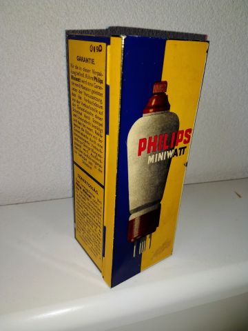 Blikken verpakkingsdoosje voor de Miniwatt-radiobuis |