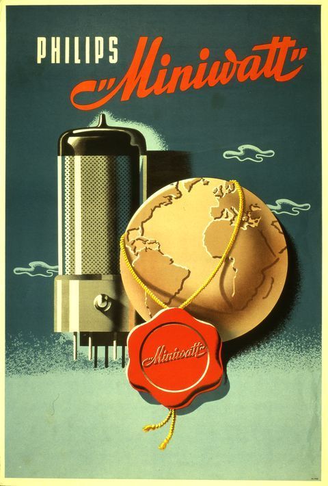Affiche voor Miniwatt-radiobuizen, 1947