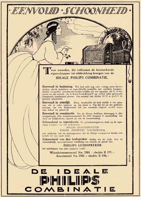 Advertentie voor radio, luidspreker en toebehoren, 1927.