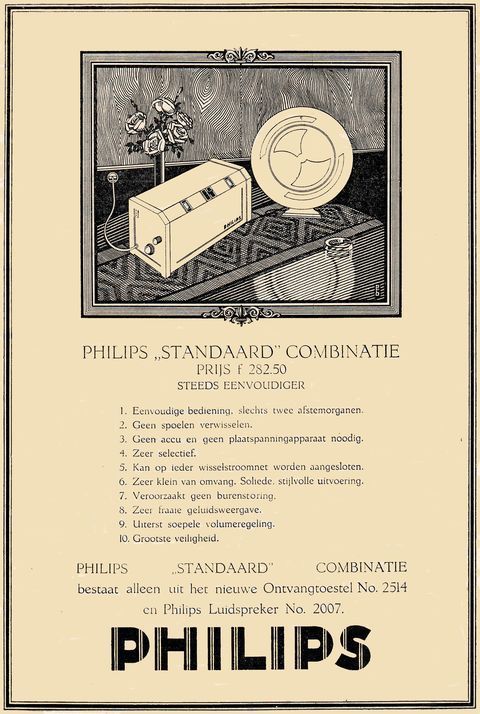 Advertentie voor radiotoestel 2514 en luidspreker type 2007, 1928