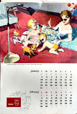 Kalenderblad met reclame voor medische apparatuur, 1958
