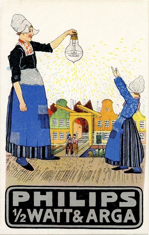 Reclamebriefkaart voor halfwatt- en argalampen, ca. 1916
