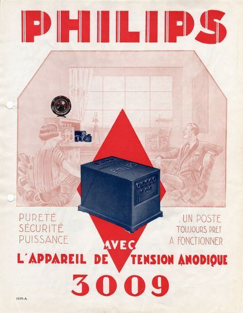 Opschrift: PHILIPS L'APPAREIL DE TENSION ANODIQUE 3009