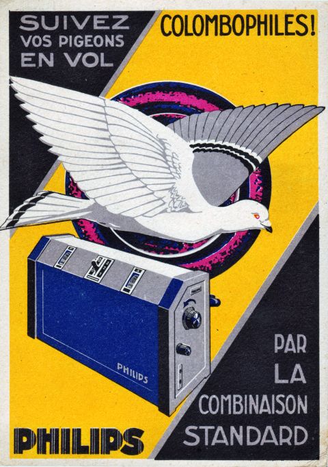 Opschrift: COLOMBOPHILES! SUIVEZ VOS PIGEONS EN VOL PAR LA COMBINAISON STANDARD PHILIPS
