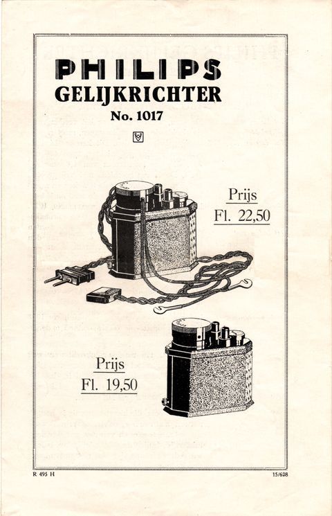 Reclamefolder voor gelijkrichter type 1017, 1928