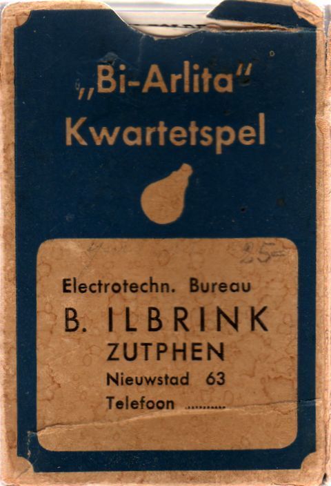 Kwartetspel met reclame voor allerlei soorten verlichting, ca. 1935