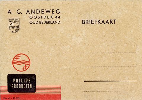 Briefkaart met reclame voor Philips-producten, ca. 1943