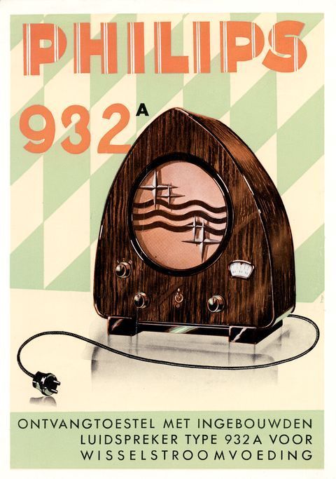 Opschrift: PHILIPS 932A ONTVANGTOESTEL MET INGEBOUWDEN LUIDSPREKER TYPE 932A VOOR WISSELSTROOMVOEDING