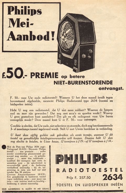 Philips Mei-Aanbod! f.50,- PREMIE op betere NIET-BURENSTORENDE ontvangst. |
