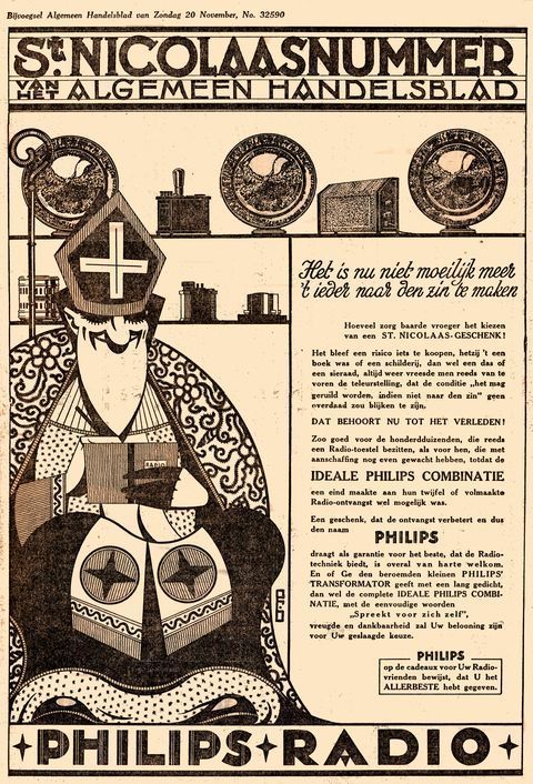 Omschrijving: Advertentie voor radioapparaten, luidsprekers en radiotoebehoren