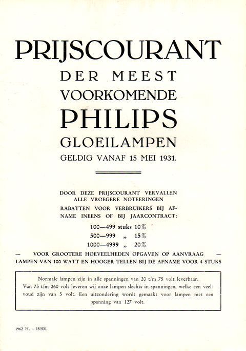 Prijscourant voor gloeilampen, 1931