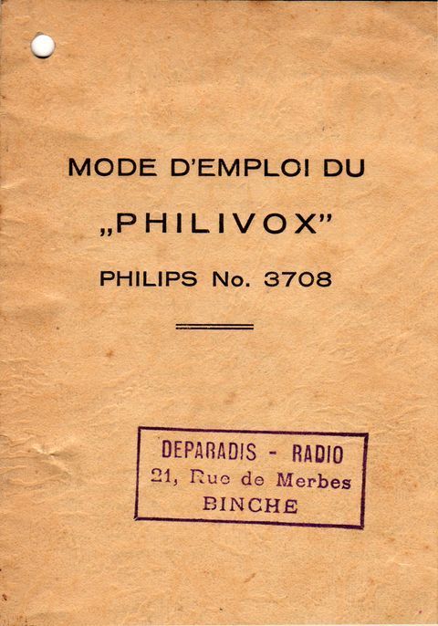 Opschrift: MODE D'EMPLOI DU "PHILIVOX" PHILIPS No. 3708