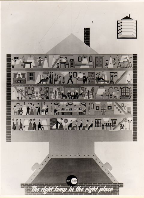 Foto van affiche met reclame voor gloeilampen, ca. 1953