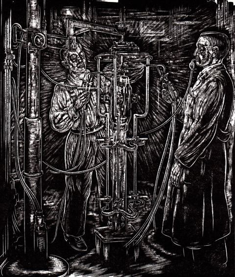 Gravure: Het Kwartsblazen van een Zendbuis, 1949
