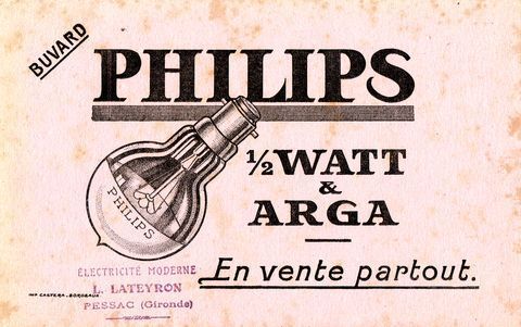 Omschrijving: Vloeiblad met reclame voor halfwatt- en argalampen