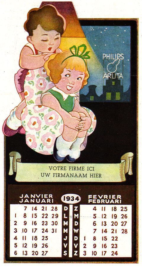 Model kalenderblad met reclame voor Arlitalampen