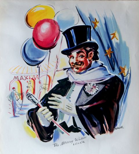 Illustratie op kalenderblad met reclame voor medische apparatuur en cyclotrons, 1954