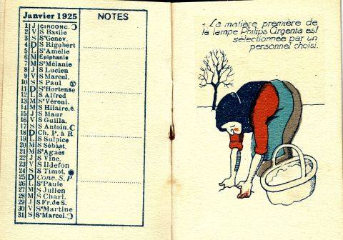 Kalenderblad met reclame voor Argentalampen, 1924