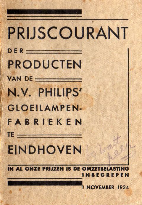 PRIJSCOURANT DER PRODUCTEN VAN DE N.V. PHILIPS' GLOEILAMPENFABRIEKEN TE EINDHOVEN |