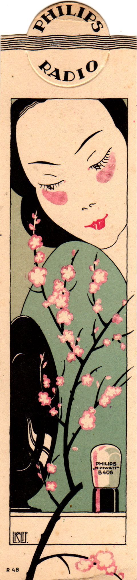Boekenlegger met reclame voor radiobuis B406, ca. 1926
