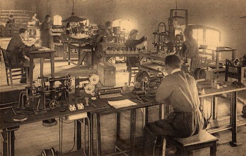 Op de achterzijde staat: Usines Philips Belges à Lessines (Hainaut). Un atelier. |