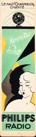 Boekenlegger met reclame voor luidsprekers (voorzijde), ca. 1928