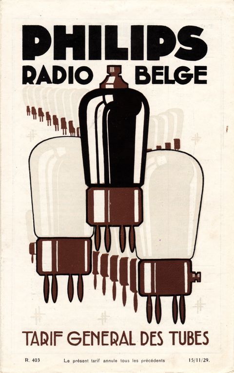 Opschrift: PHILIPS RADIO BELGE TARIF GENERAL DES TUBES