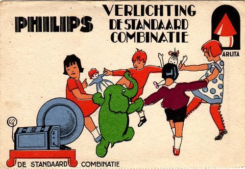 Reclamebriefkaart voor radio en verlichting, ca. 1930